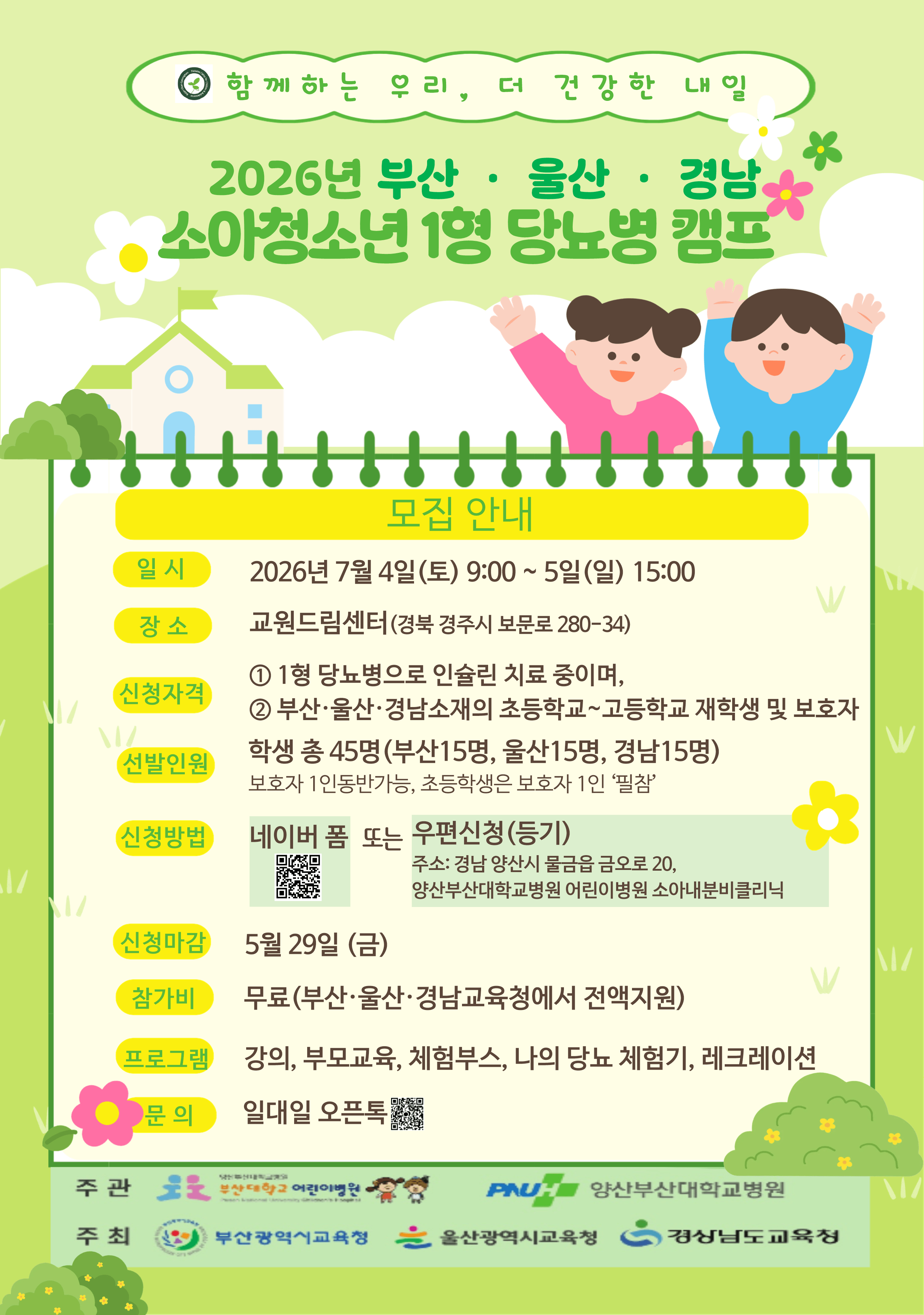 2026년 부산·울산·경남 소아청소년 1형 당뇨병 캠프 참가자 모집