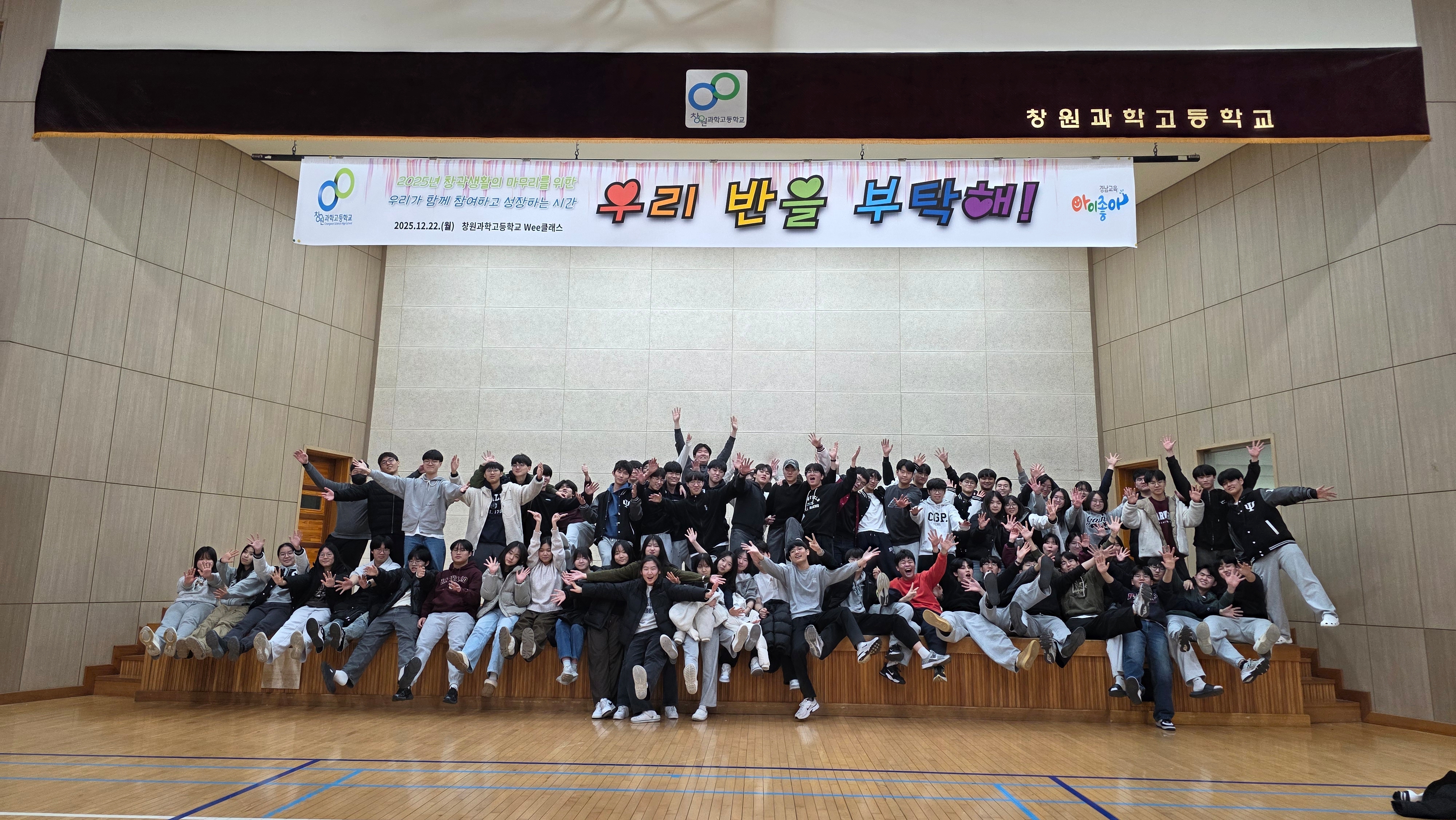 2학년 진급을 앞두고, 서로가 같은 반에서 함께 했던 지난 시간들을 의미있는 단합된 활동을 통해 공동체감을 느끼고, 스트레스도 풀며 함께 즐거운 시간을 가졌습니다.